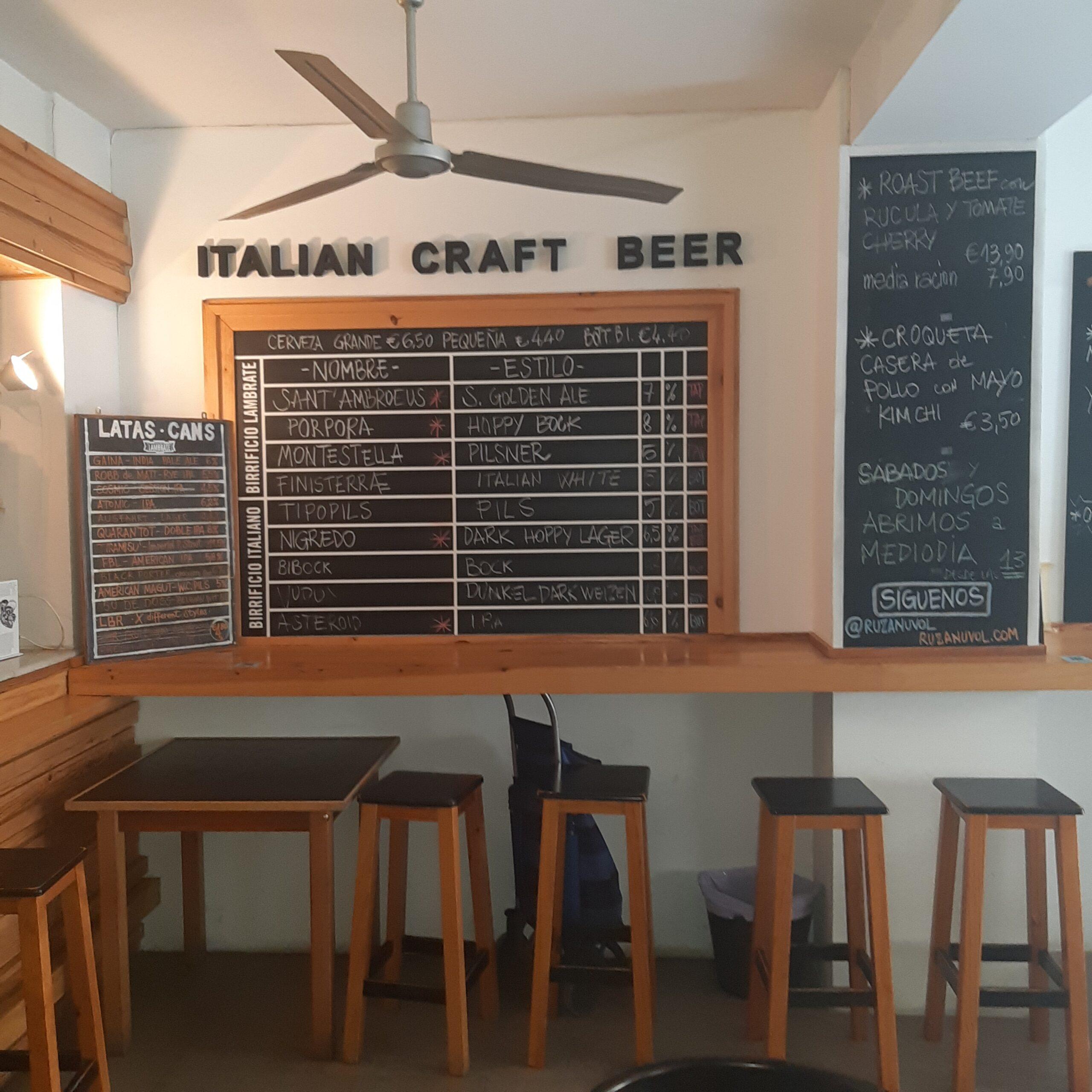 Un segundo lugar muy chulo que encontré por casualidad es Ruzanuvol, un pequeño y agradable bar con una gran selección de cerveza artesanal italiana. Probé unas cuantas cervezas de barril in situ y cogí una buena selección en latas. Aunque las cervezas son de Italia y no de Valencia, ¡sólo puedo recomendar este bar a los amantes de la cerveza!